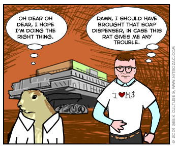 | It doesn't matter. I've wanted to bash the hell out of Microsoftie for a long time, ... quit picking on hapless cartoon characters, you big bully! |