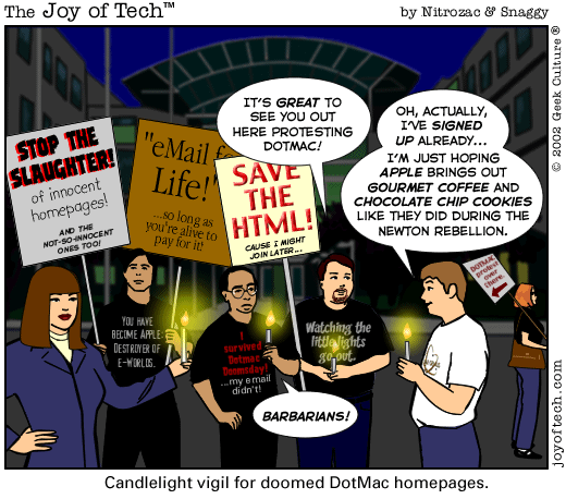 If you're using a Mac and a newer version of Explorer, here's a neat trick courtesy of MacMerc. Drag the above little image to the top tool bar of your browser, it should "stick" afterwards. Now you have a graphical link to the Joy of Tech, one that will update everytime a new comic is uploaded. (You may have to refresh the image manually if it's in your cache.) If you need to delete or move it it, just control button/click and hold, then select delete, or just Command/drag it to the trash.
