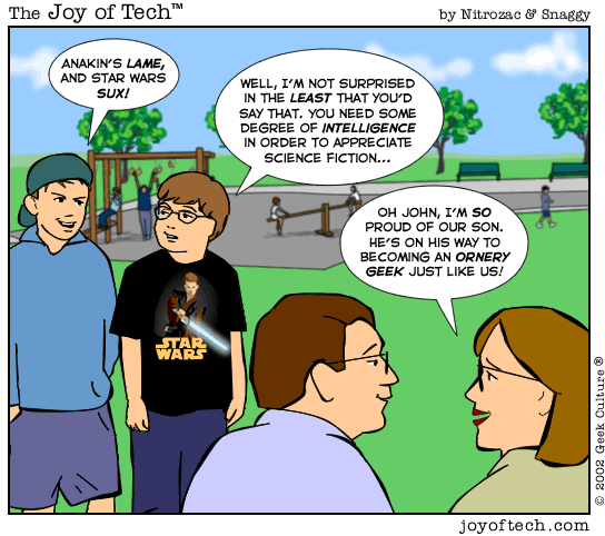 - The geeklette's father turned to the mother and said "Well, you know dear, I'm not surprised in the least that you'd say that, but you have to admit, Anakin is lame."